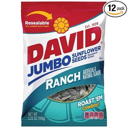 I haven’t had David’s Nacho Cheese Sunflower Seeds in four-score and seven-coon’s ages. I don’t think they exist anymore. But I certainly used to mow em down on the ball diamond at a young age.
