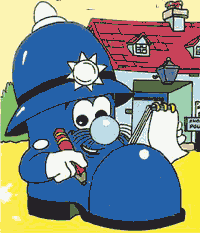 From the 1987 British cartoon The Shoe People. P.C. Boot is the policeman of Shoe Town. He lives at the Shoe Street Police Station. He is friends with Sid Slipper and Gilda Van Der Clog – (Grade B)